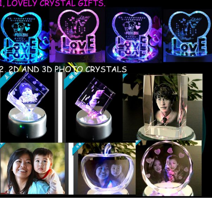 It is especially suitable for 3D laser carving of artificial crystal, glass, acrylic and other transparent and hard materials. It has been widely used in 3D and 2D crystal photos, logos and products