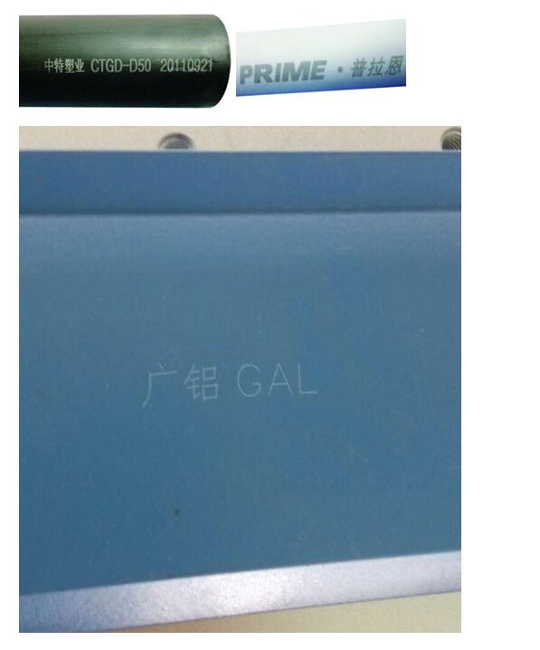 管道的激光標刻是采用光纖激光激光打標機為主要設備,激光作用加熱區表面顏色變化(也稱碳化),材料溶化后在凝固,并在材料表面露出反襯性的色彩。由于著色劑的加入改變了塑料對激光的吸收特性,因此在深色塑料上變色效果比較明顯,使得打印的標識有明顯的色澤效果和對比度。激光標記相對于傳統的噴墨打印和熱印具有標記永久性、無接觸式加工、任意圖形編輯、高效率低成本和環保無污染等優點。標識內容完整、清晰、永久,具有可追溯性,進一步提高了產品質量。